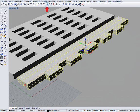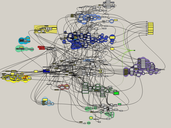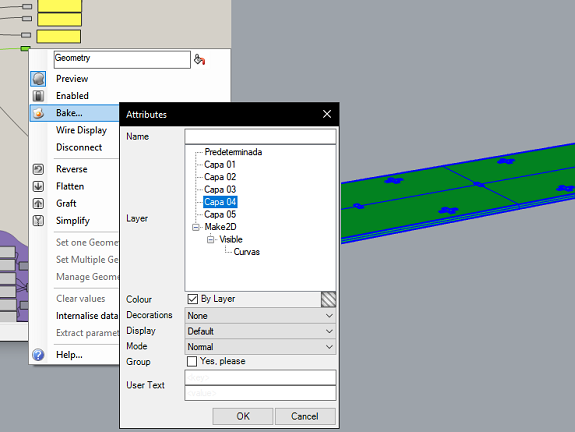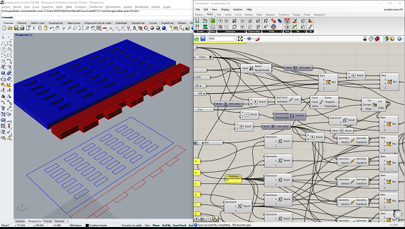 In this image you can see the workbench during the conversion process to 3d objects from Grasshopper to Rhinoceros.