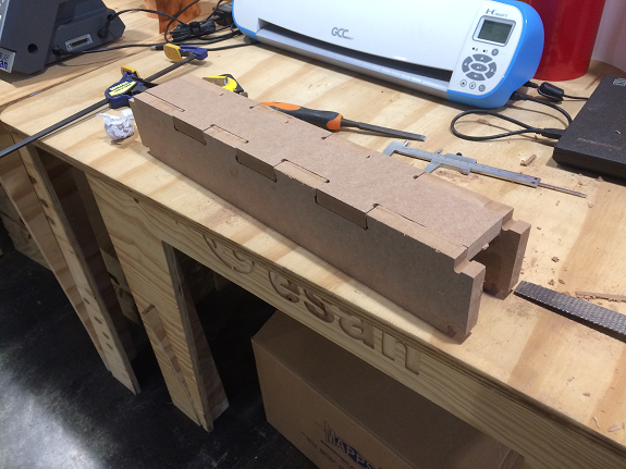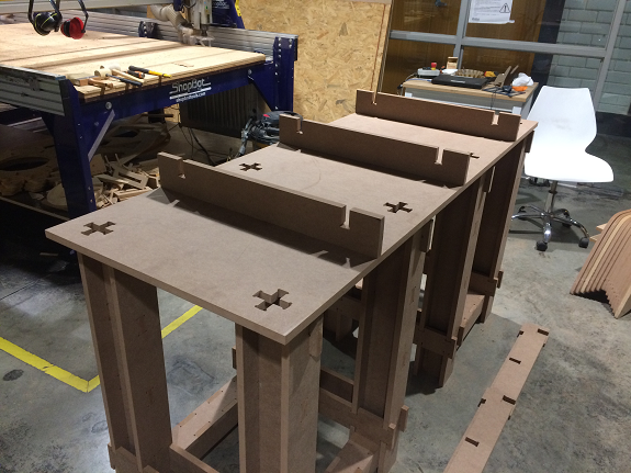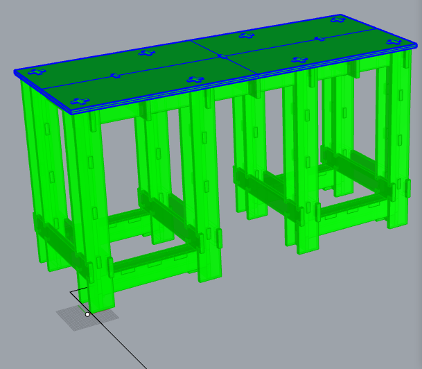 To make sure that nothing is missing and that it is possible to assemble the "Puzzle", I decided to do a 1:10 scale test of the workbench using the laser cutter and a 3mm MDF plate.
