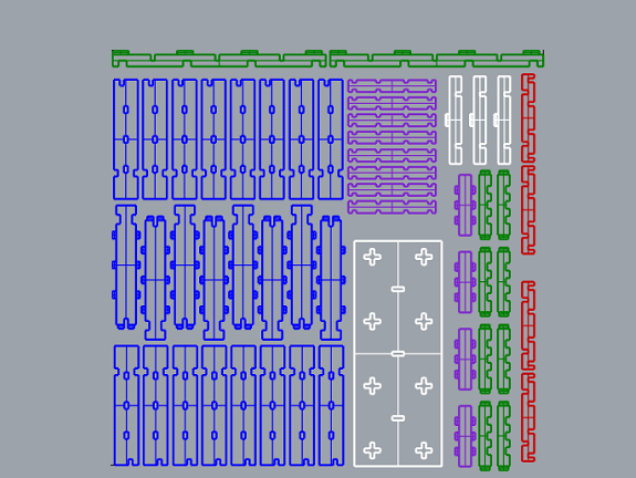 As all the design is parametrized, I changed the thickness of the material to 30mm, so that when reduced to scale it is 3mm. This is necessary because many pieces have "press-fit" widths or holes depending on the thickness of the material.