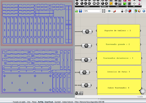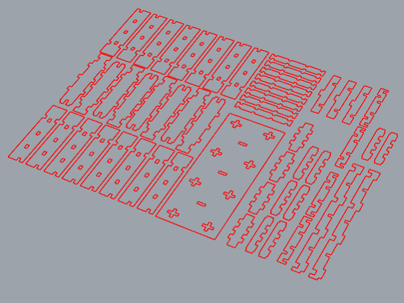 At Rhinoceros, I re-located all the pieces to save the maximum space, taking into account the dimensions of the MDF board.