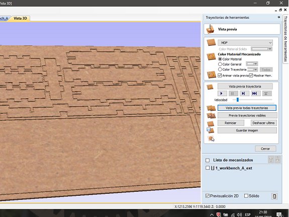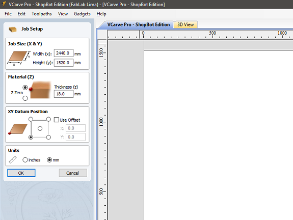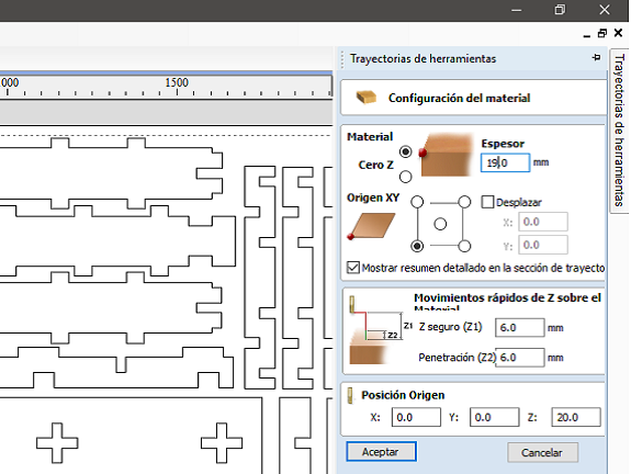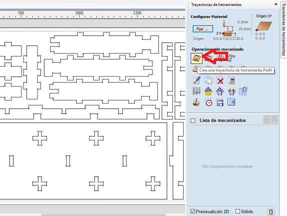To make sure that the cut of the material is complete, I defined the thickness as 19 mm. This is because the thickness of the MDF boards can vary from one manufacturer to another or due to the effects of humidity.