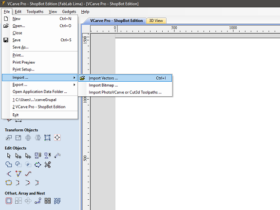 Once the DXF file was imported, I selected all the parts and with the tool to transform objects I moved them to the work zone.