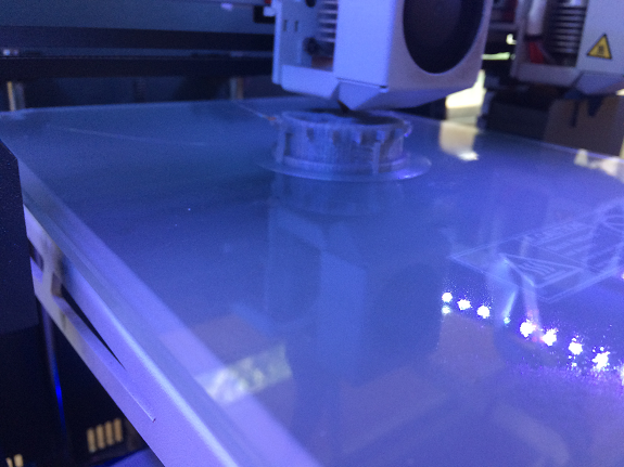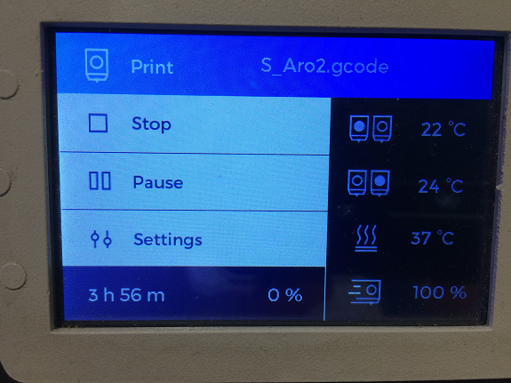 In the next two images, the control screen of the 3D printer and the start of the print job.