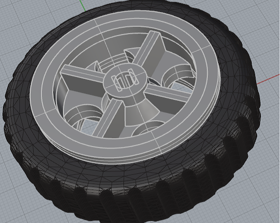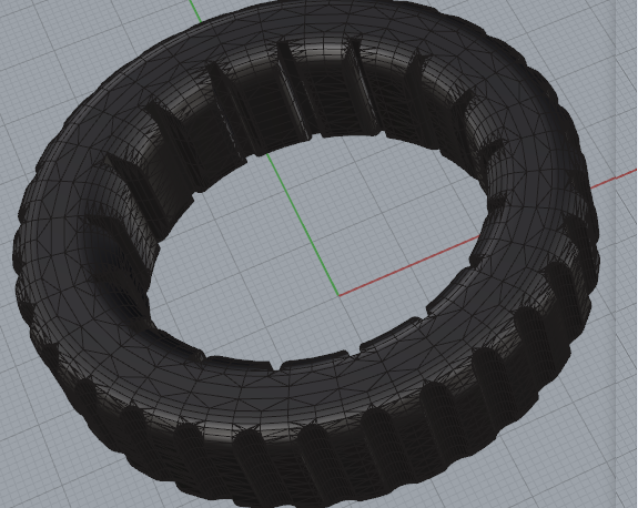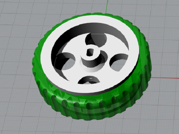 This image shows the design of the tire, with a subtraction of cylinders around the tire I added the tread.