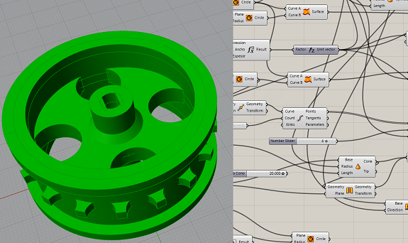 For the design of the wheel and the tire I used Grasshopper by Rhinoceros, this parametric design tool