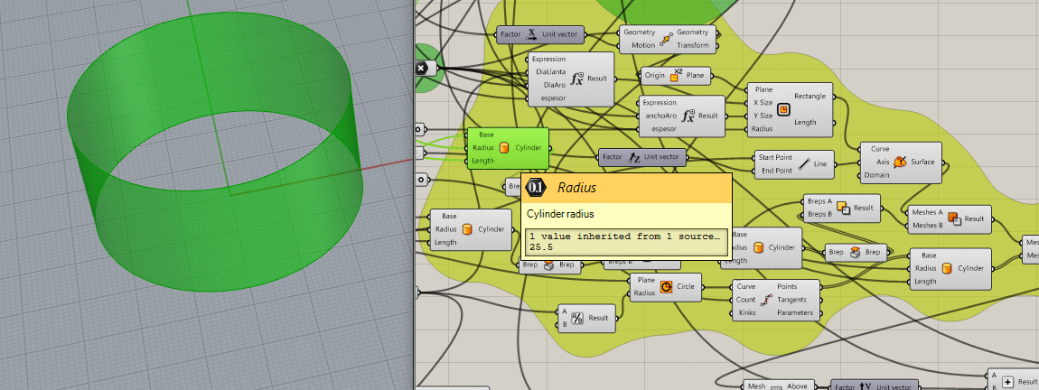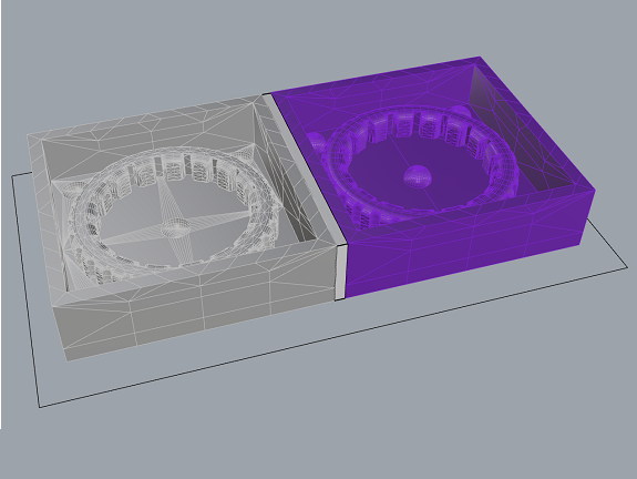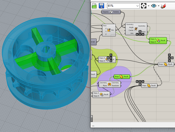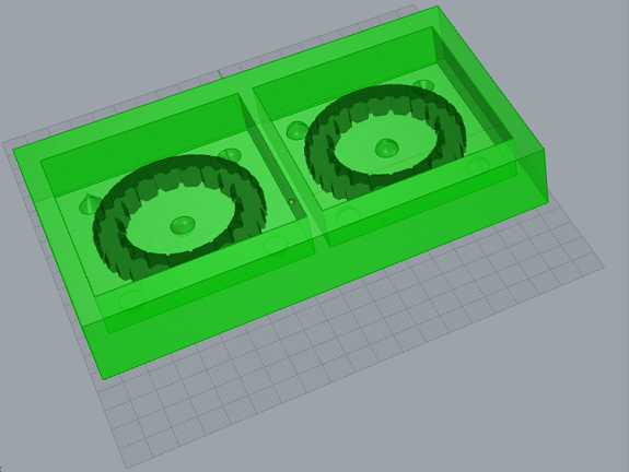 This image shows the tire, to make the mold I split the design in two with the Split component and I put them in a box with the Move and Rotate components.