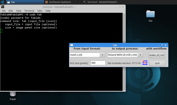 then I selected the input format: "mesh (.stl)" and the output process: "Roland MDX-20 mill (.rml )",