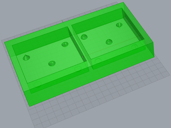 to which I put four spheres and a cone so that the molds assemble in the correct position.