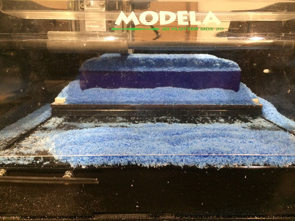 With the STL file and the blue wax block I went to the computer connected to the Roland MDX-20
