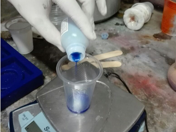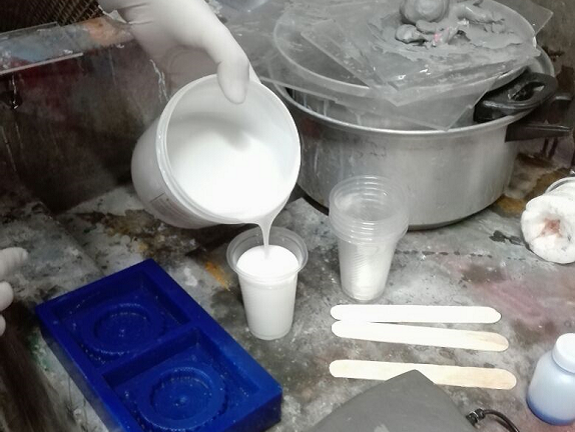 I emptied the silicone mixed with the catalyst in one of the molds,