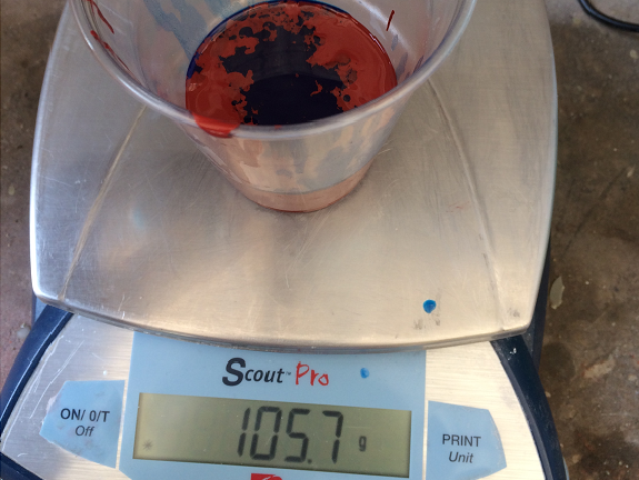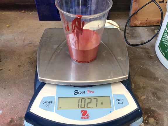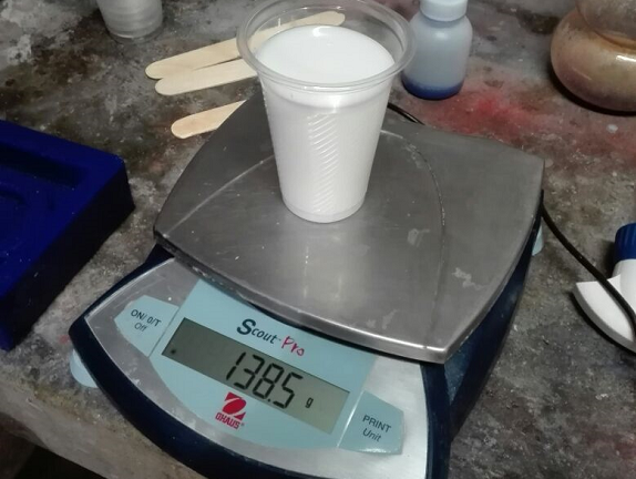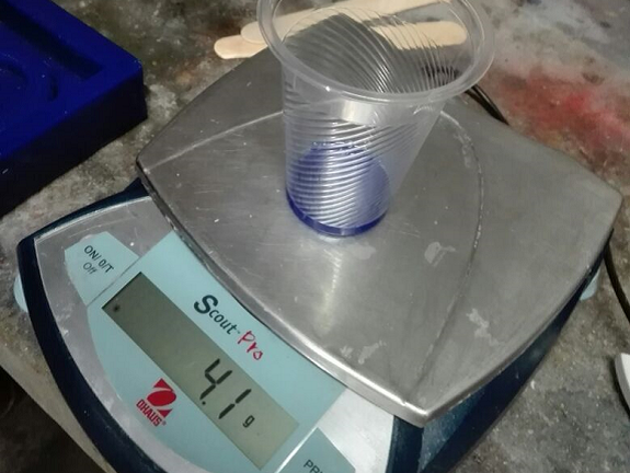 I filled a plastic cup with 102.7 gr of silicone rubber compound.
