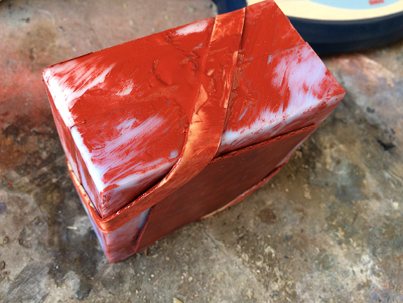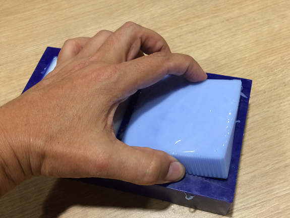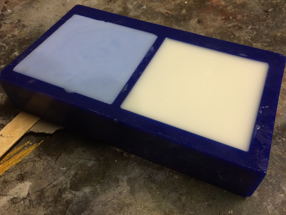 With the blue wax mold, the next step is to make the silicone mold.