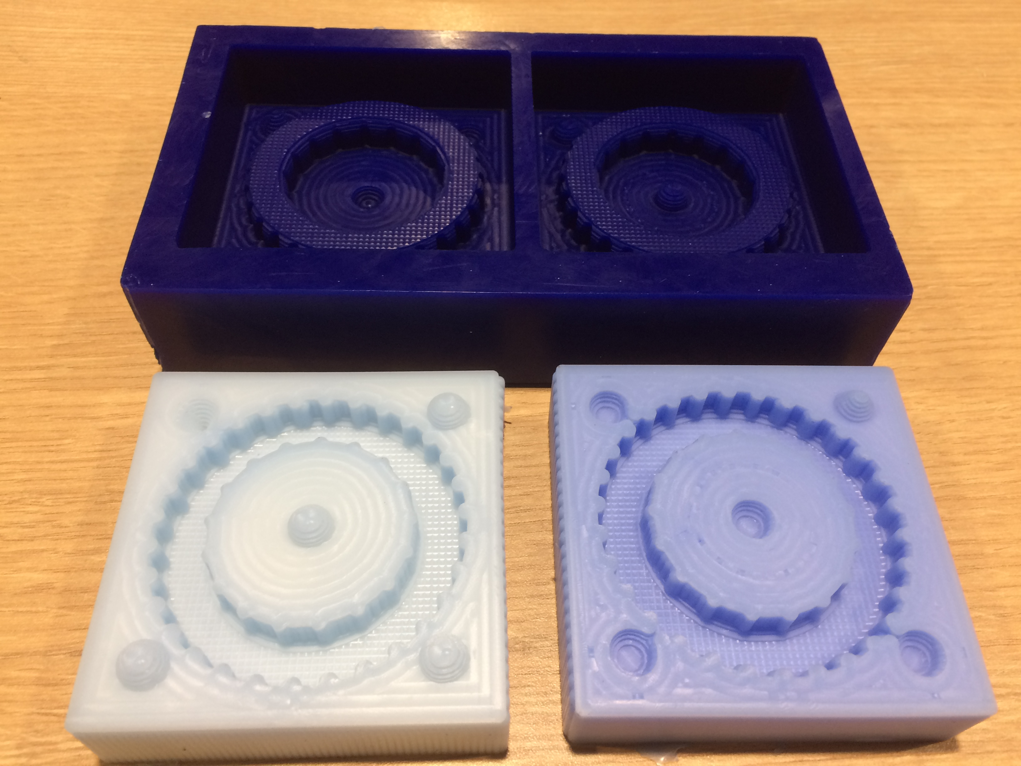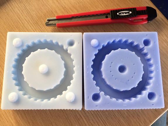 In this image both molds are filled with silicone.