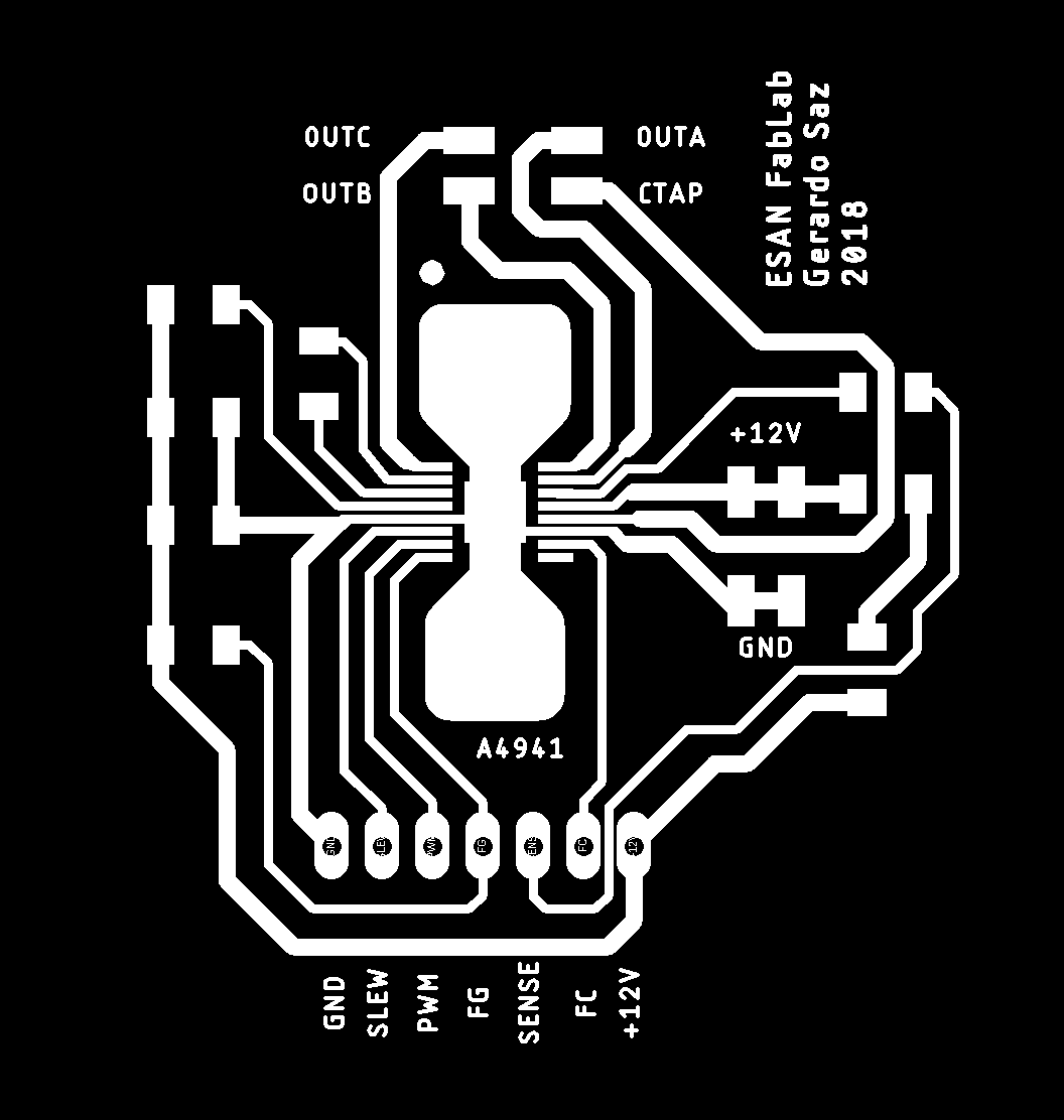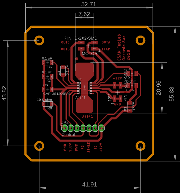 The controller A4941 has a heat sink on the bottom that is connected to Gnd, to help dissipate this heat I made the tracks as thick as possible, and on both sides of the controller I drew a couple of areas to help dissipate that heat , I will not know if it was enough or exessive until I tested its operation.