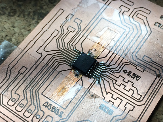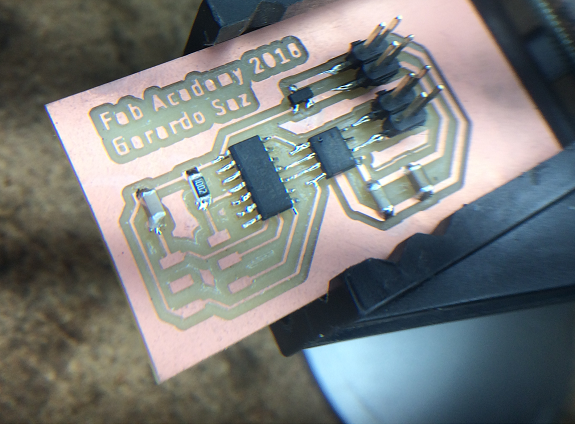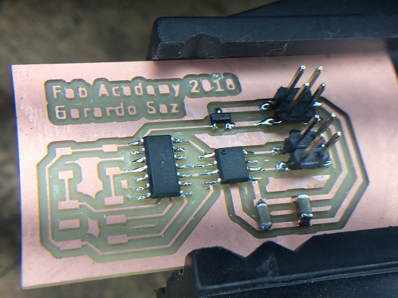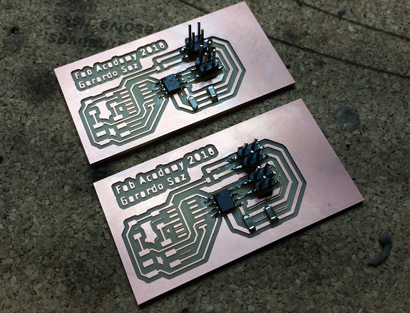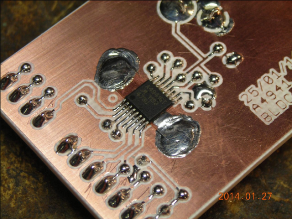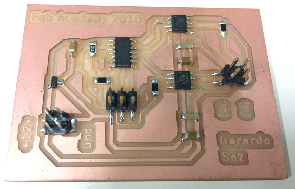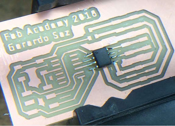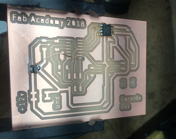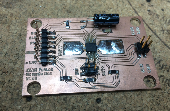 This PCB is one of the newly milled plates, it is ready to weld the components.