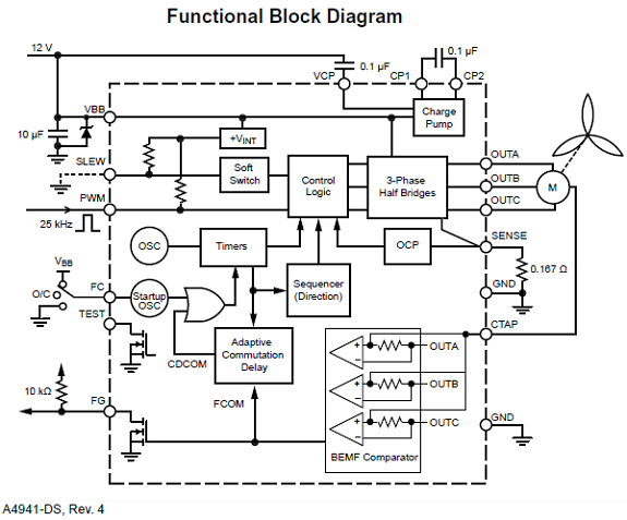 - FG: Pulse output - divide by 4 to get shaft speed