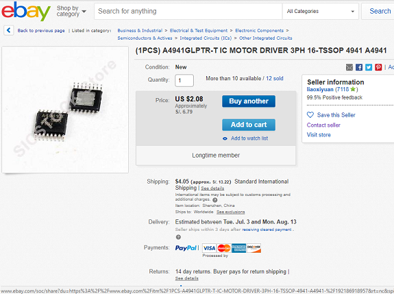 The A4941 processor was not in stock, so I looked for it in electronics stores but I did not find it either. So I bought it from Ebay to a Chinese manufacturer at $ 2.08 each, I bought 8 to have reserve if they burn during use.