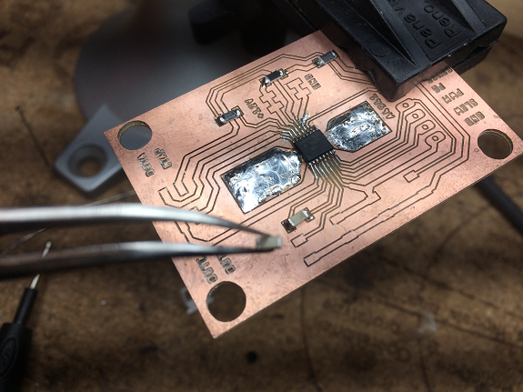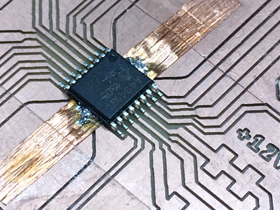 The track that reaches pin 2 of ATtiny44 was very thin and broke.