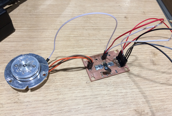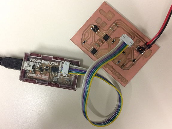 It's time to upload the program. for that I used my FabISP programmer and some cables to give 12 volts to the PCB.