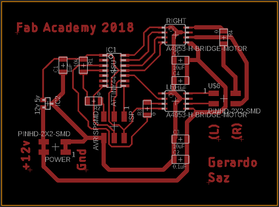 As you can see in my component diagram, the microcontroller of the right motor is on the upper side of the PCB and the microcontroller on the left side of the central side.
