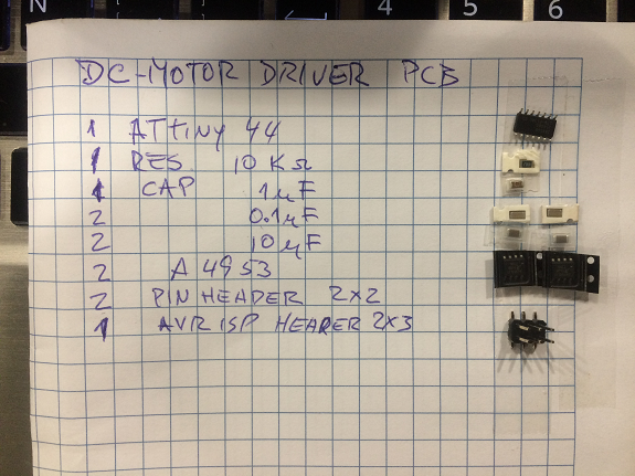 Here is the list of components for the PCB that will control the hard drive motor.