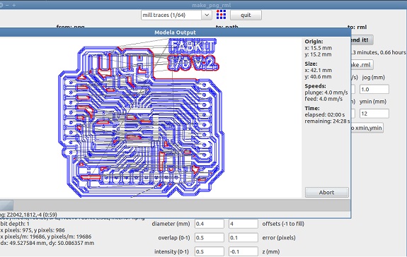 For the milling process of tracks I used the 1/64" milling bit and it took about 26 minutes.