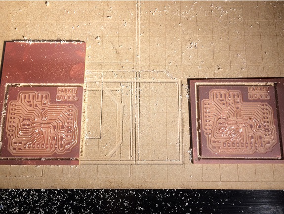 Here you can see a couple of videos from part of the milling process of the PCB tracks with the 1/64" milling bit and the contour cut with the milling bit 1/16" (at that time there was no 1/32").