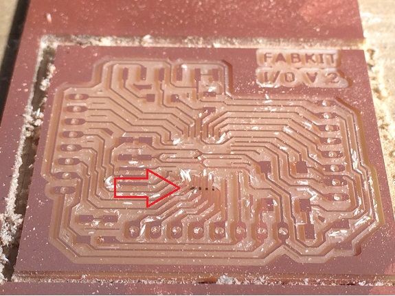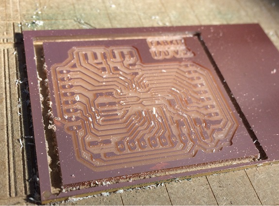 Although I had already milled several PCBs before without major problems, this time it cost me several attempts, in most the problem was that the tracks were broken and got up, I could modify the design to make the tracks to 16mil, but even so the tracks were up.
