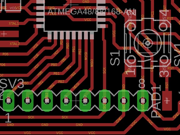I used the schematic diagram to identify the pins that correspond to the ISP port The pins for the ISP connection are at the bottom of the next image.