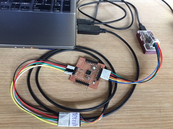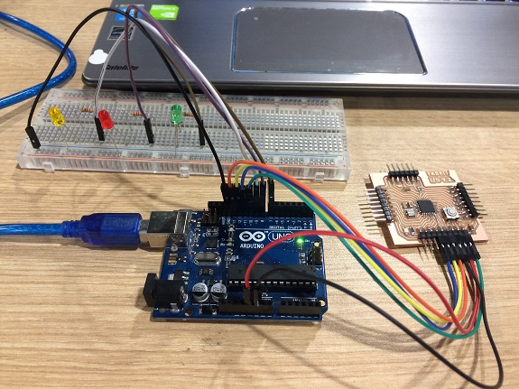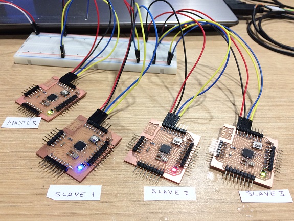 For this assignment, I decided to use the I2C protocol, I previously made a two PCB Fabduino FABKIT 2.0 that I connected one to the another.