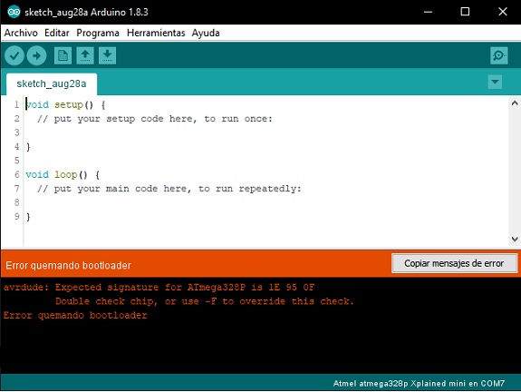 Finally, burn the bootloader. But again I got an error message similar to the other method.