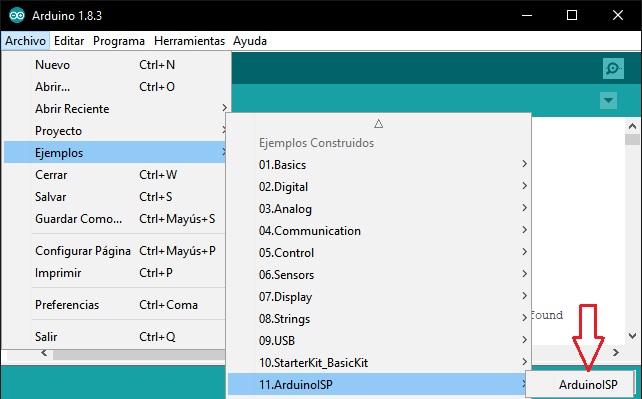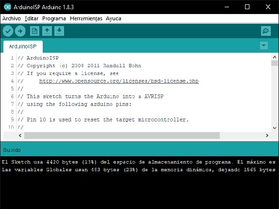 Up to this point, there were no problems, the ArduinoISP sketch was loaded onto the Arduino board that I would use as a programmer.