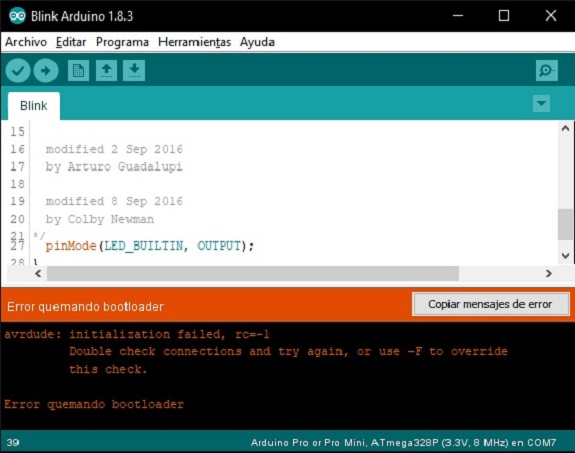Error burning the bootloader