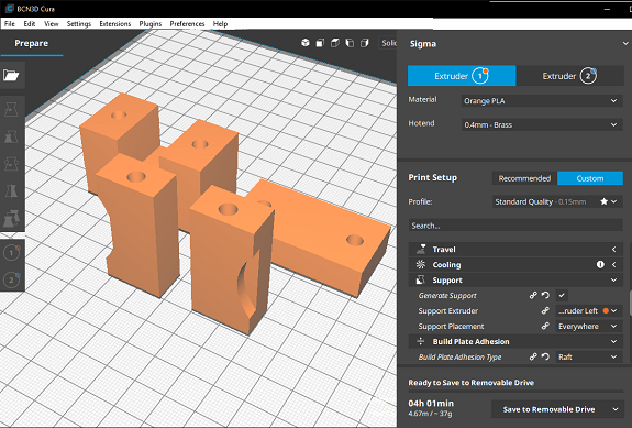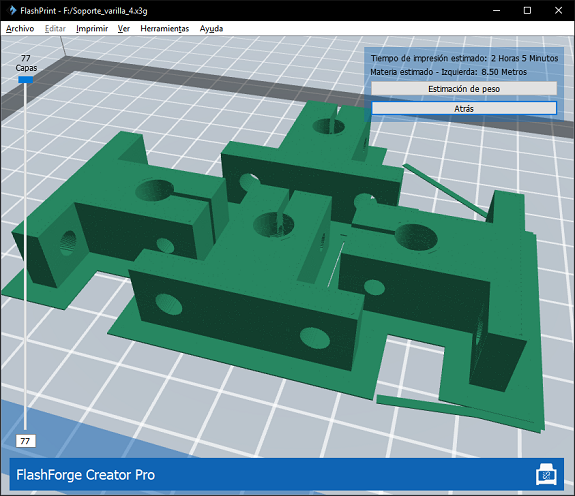 The STL file is uploaded to Flasprint, which is the job preparation software of the printer "FlashForge Creator Pro", where you can arrange the pieces, duplicate, rotate, move.