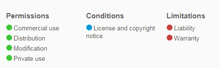 A permissive license whose main conditions require preservation of copyright and license notices. Contributors provide an express grant of patent rights. Licensed works, modifications, and larger works may be distributed under different terms and without source code.