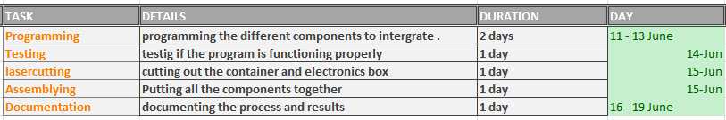 For the remaining tasks am going to split them on a daily basis schedule. At first am going to focus on programming the board then I follow with the rest.