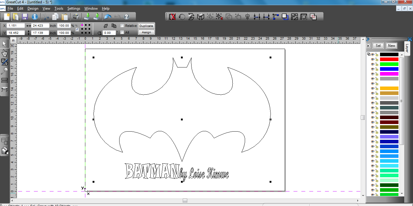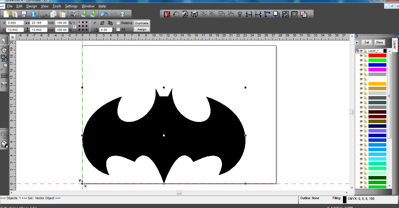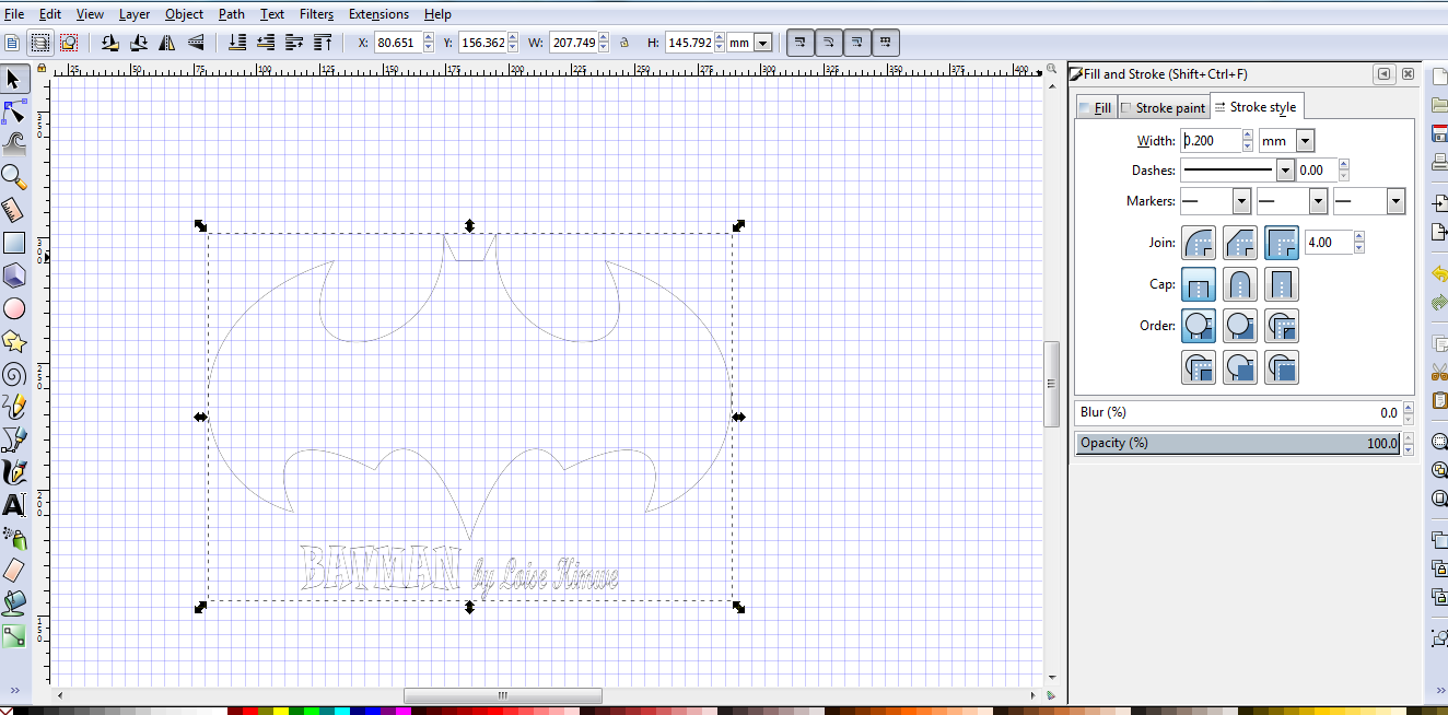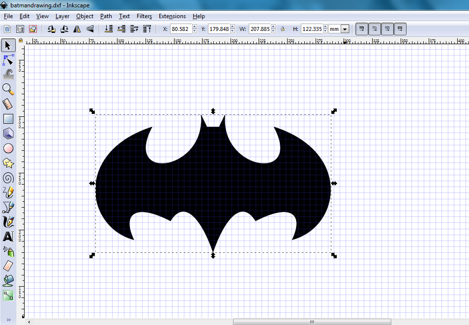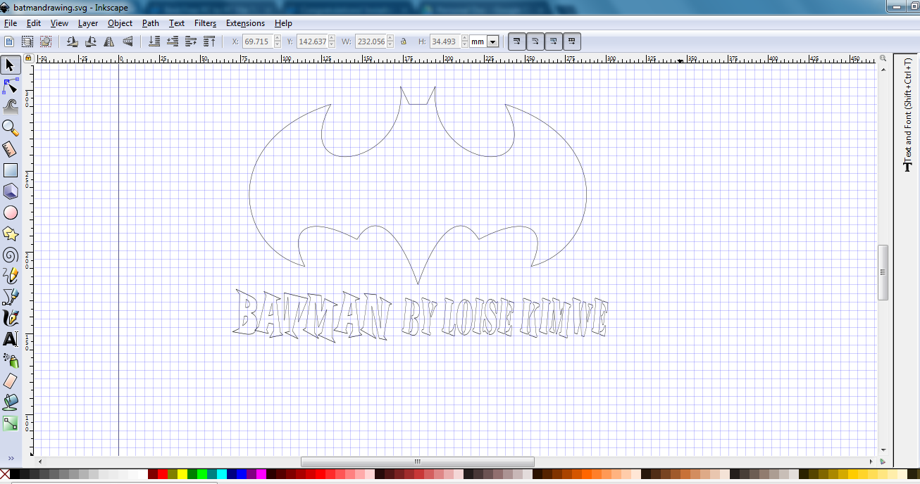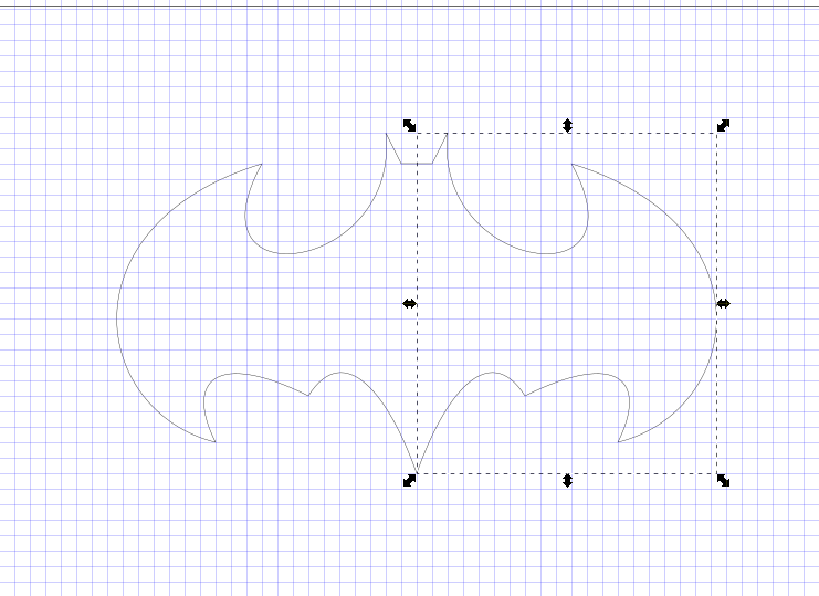 I did a different design this time around inspired by the Batman character. I have always been a fun of the superhero soo I did the logo version of batman using Inkscape. I used a picture online to refernce the design. The line and curve tool came in handy where I did a staright lines first as shown.