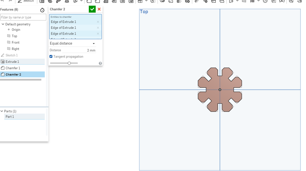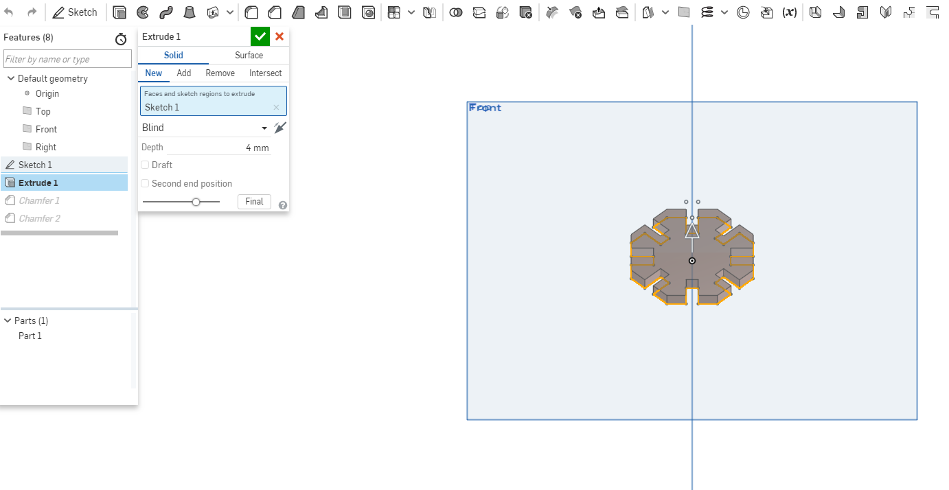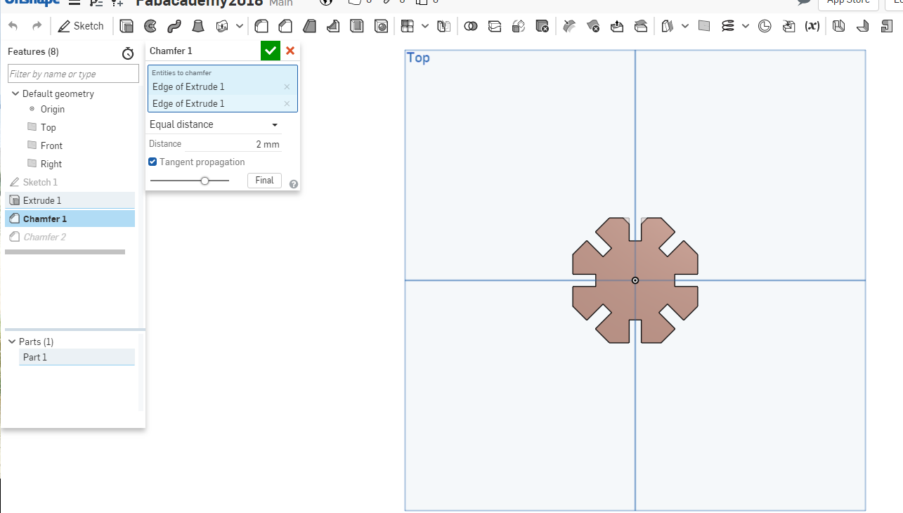 To make the pressfit fit in with bliss I used the chamfer tool to create a bend corner.I gave it a 2mm chamfer.