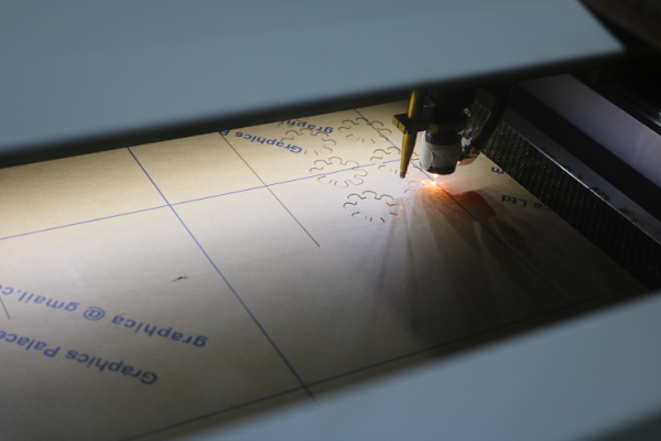I used inkscape to import the designed svg image then printed it using the lasercutter.