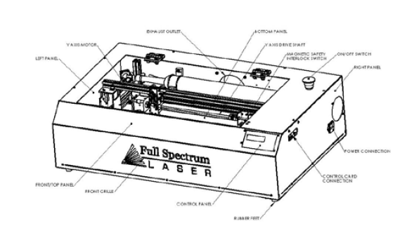 I used the named lasercutter as shown in the image below and since I had never interated with a lasrcutter before I downloaded its manual first which was a few pages and went throug it. learned how to power it and the key components involved like ventilation which has to be put outside in an open place. the water in water outlets fo running the water inside the tube inside the lasercutter.