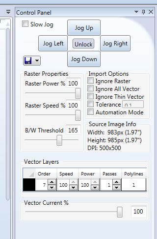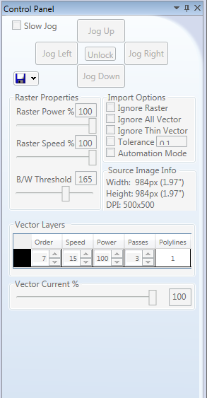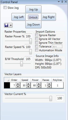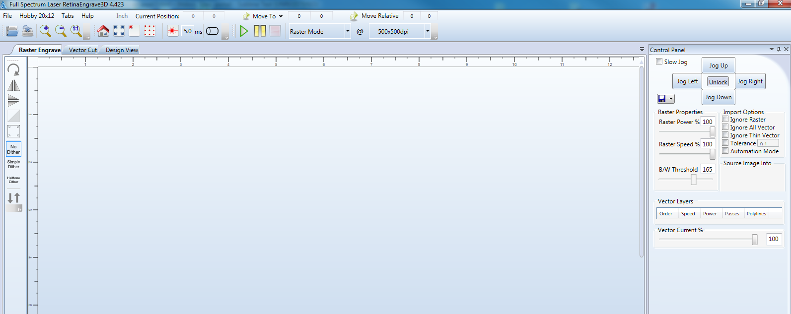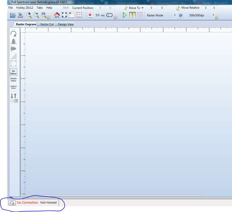 Fist I had to set up the bed for the lasercutter with the acrylic material of 6mm thickness. I connect my laptop using the ethernet cable then opened the software.The buttons highlighted below are used to configure the lasercutter.