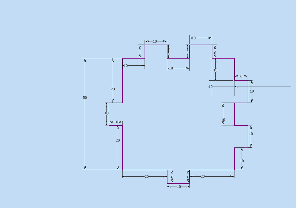 Then cut out the extra lines using the cutting tool. the measurements for the cubic is 100mm by 100mm. I had to acount for the cutouts as shown and gave them measurents.