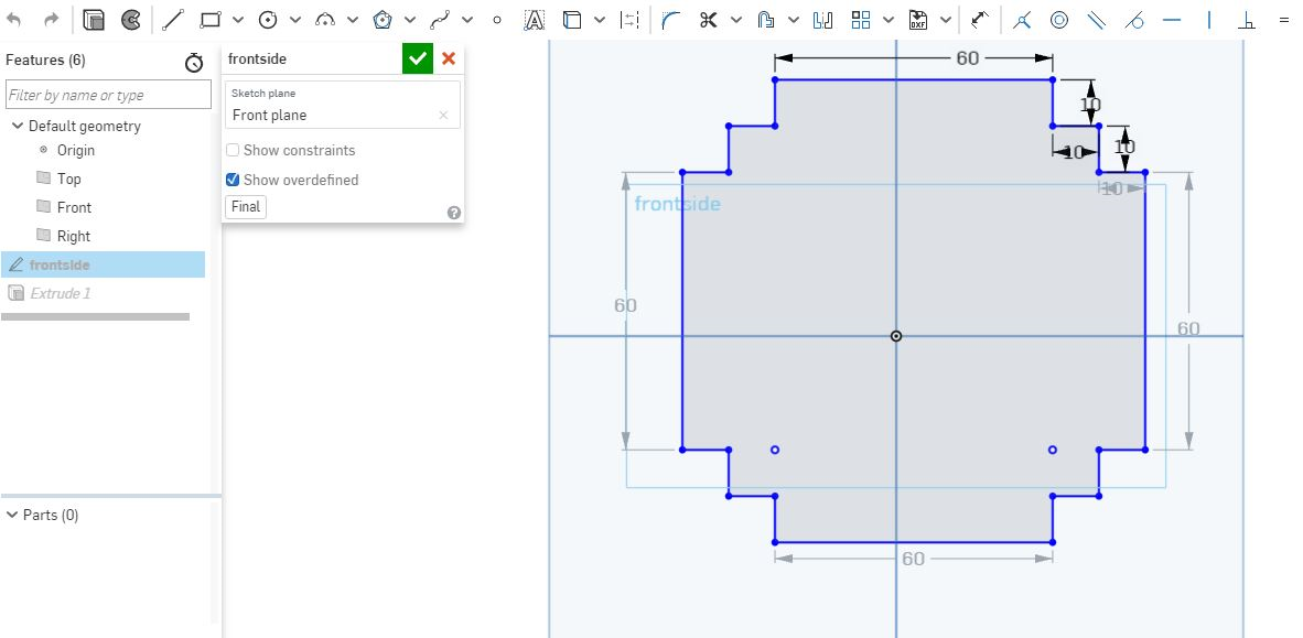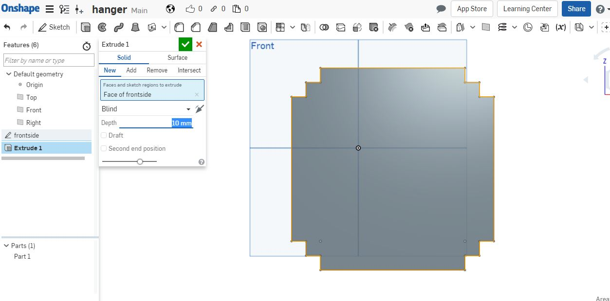 Gave it an extrusion of 10mm that will be the size of the thickness and also the insertion points.