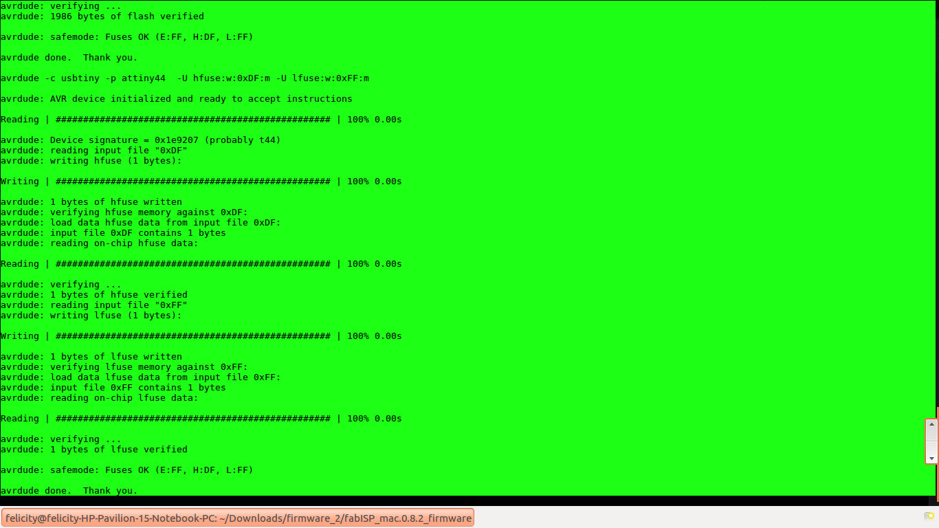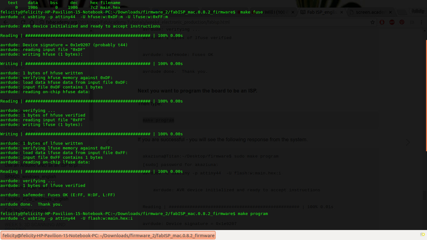 Finally my instructor instricted we try using her machine since she has linux operatong systems. while at it, the circuit had the same error of make fuse so I decided to check the connectivity. then tried again.