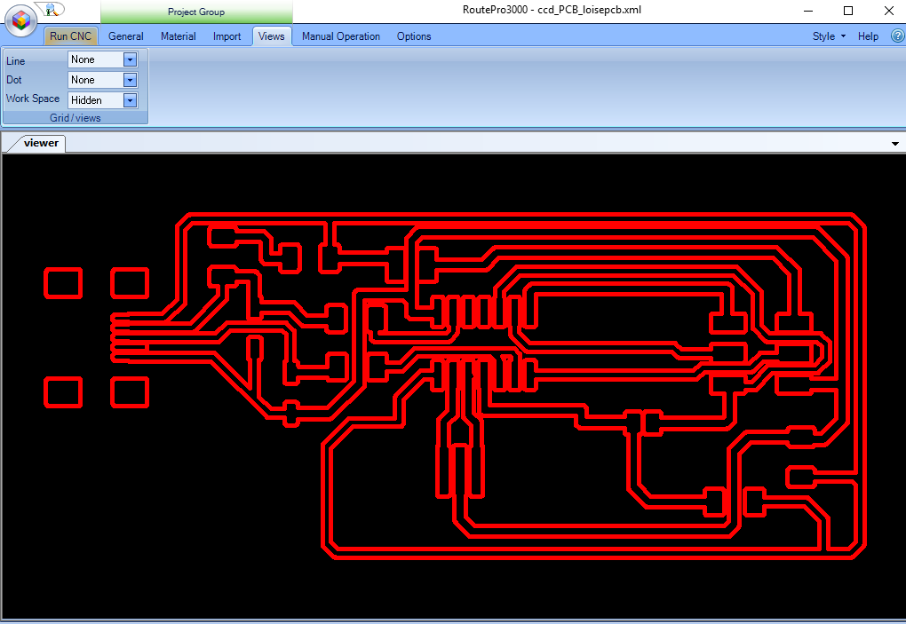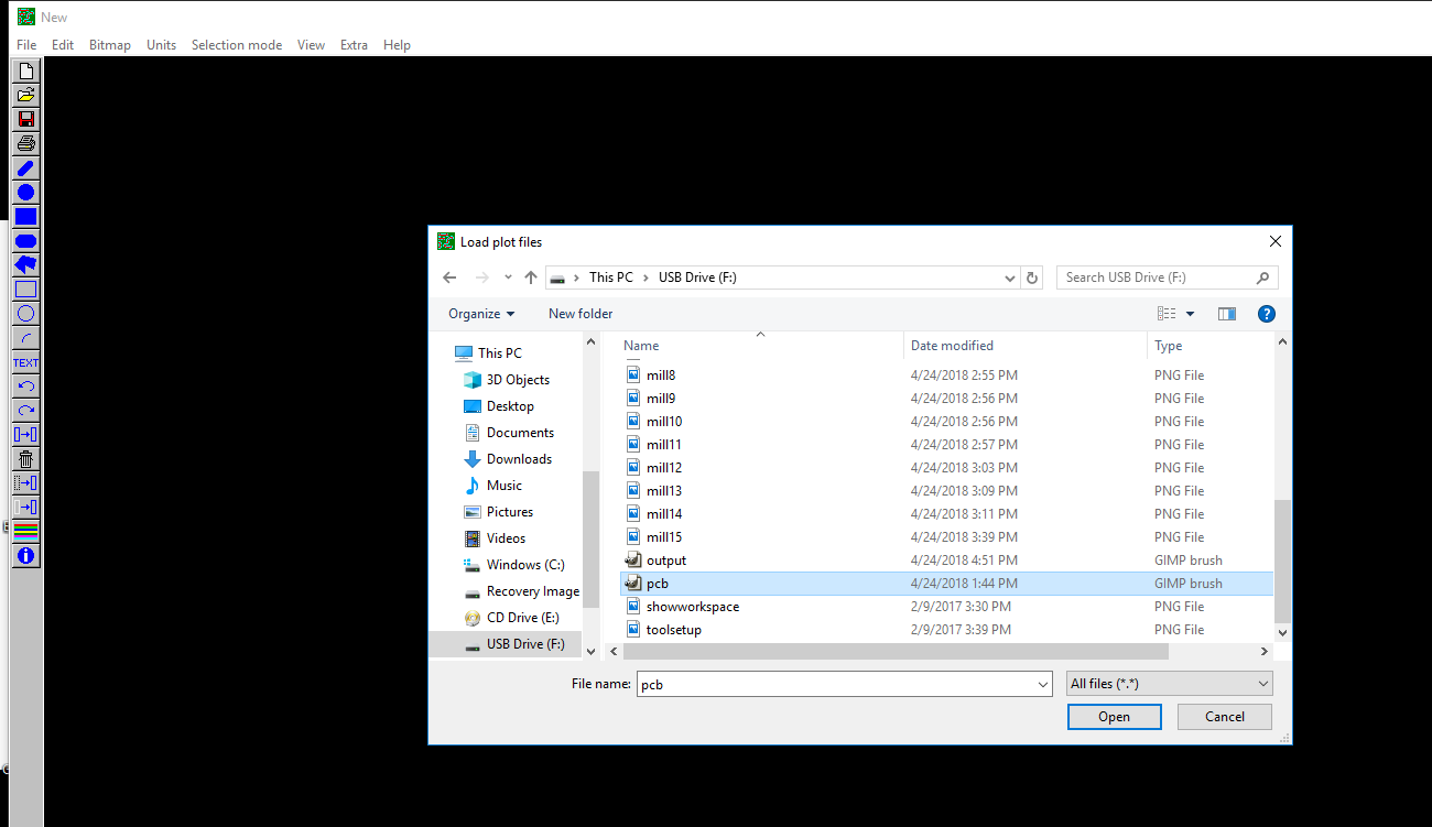 I used the IsoCam software to load the garber file for the pcb I jsut selected th egarber file I had generated from eagle, in this case i used the top garber file only. Clicked open then okay to load it.