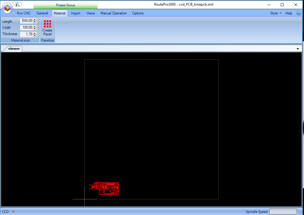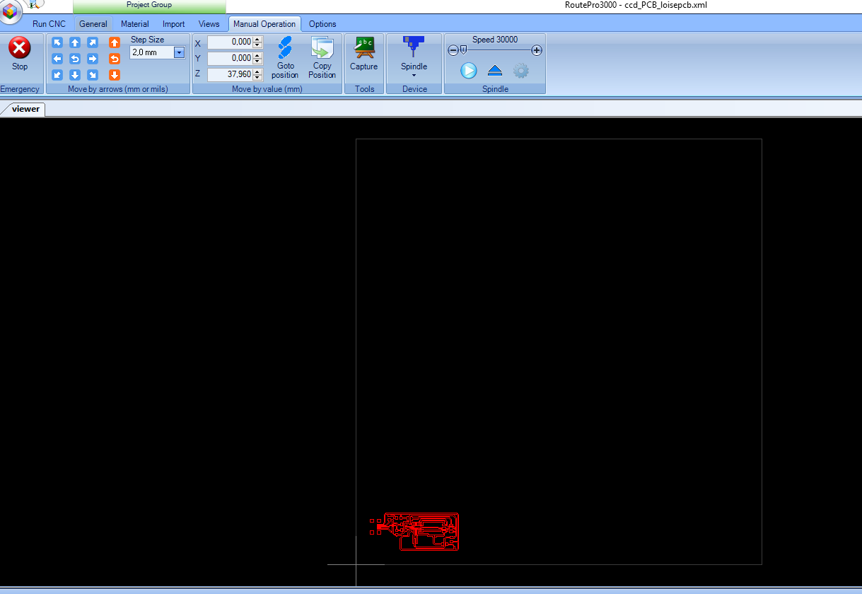 Under Manual operation I set The milling tool in the right position based on the board using the arrows buttons and step size.