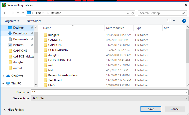 Under the file submenu option I selected save the milling data and saved it.
