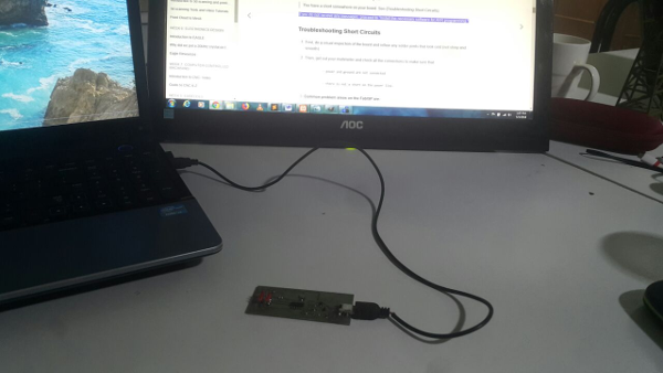 a). If you get an error message from your computer that the board is drawing too much power and that the computer is shutting down the USB port.You have a short somewhere on your board.