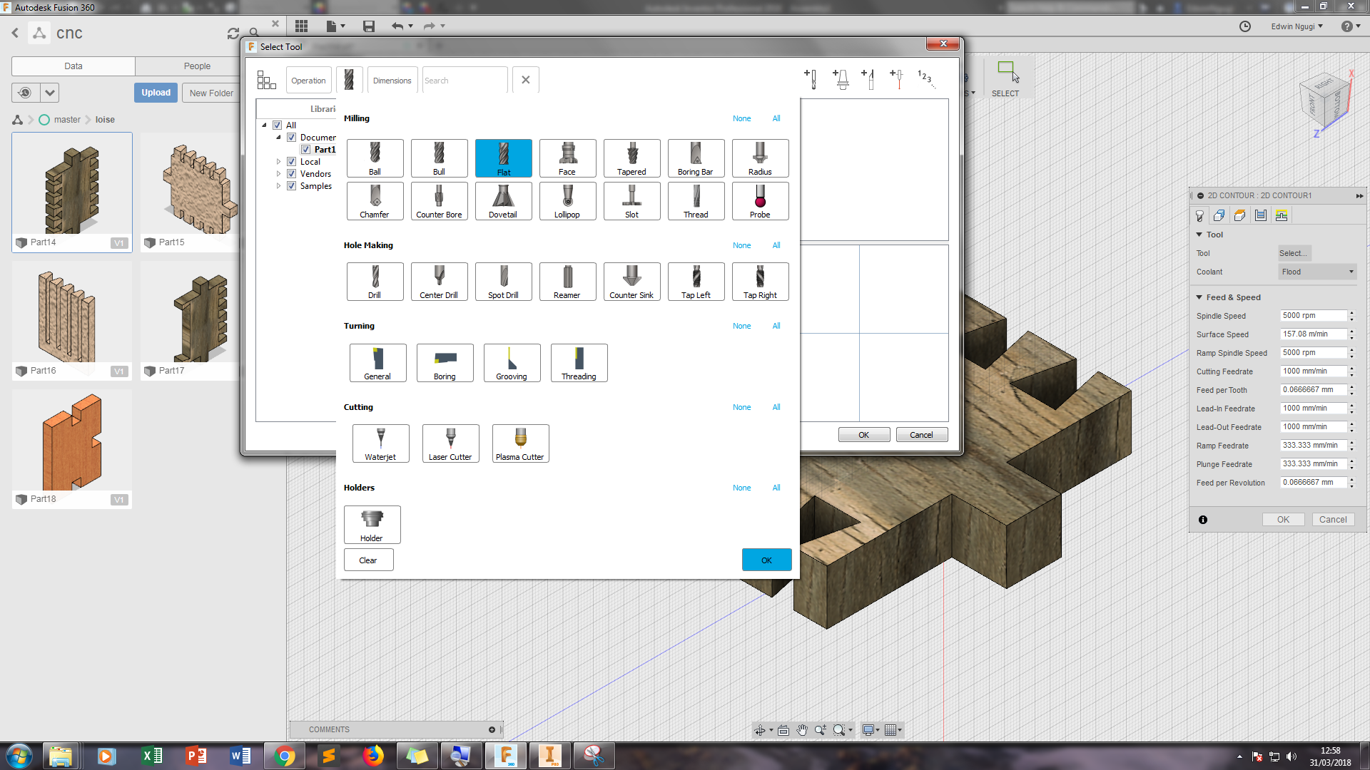 The 2D contour is where I selected the tool that I wanted to use and specified the speed and feedrates. Here i selected the flat end milling tool.