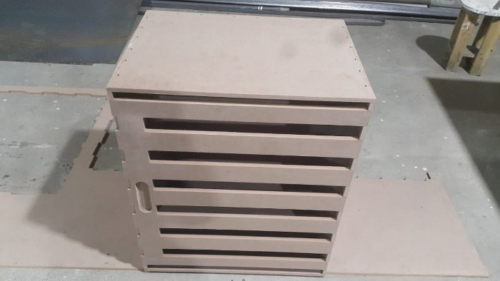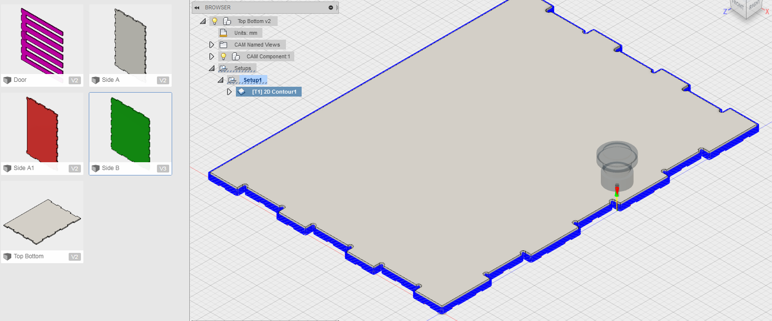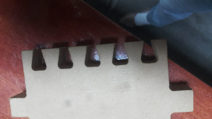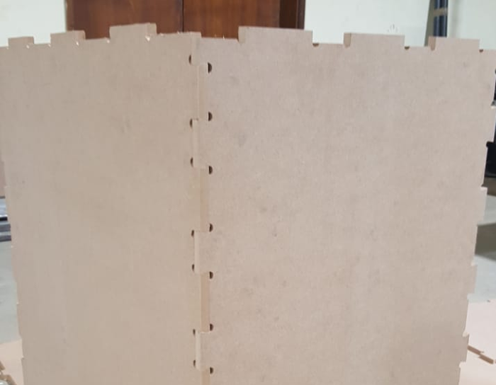 As I learnt later the corners of the design with rounded and not sharp as expected so the joints cound not pressfit together so I went back to the drawing board to find a solution since the machine can not accomplish a sharp corner.